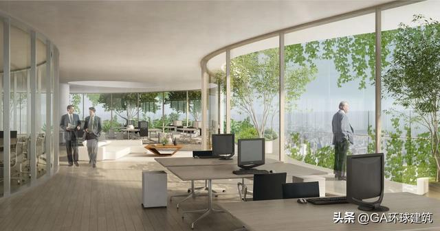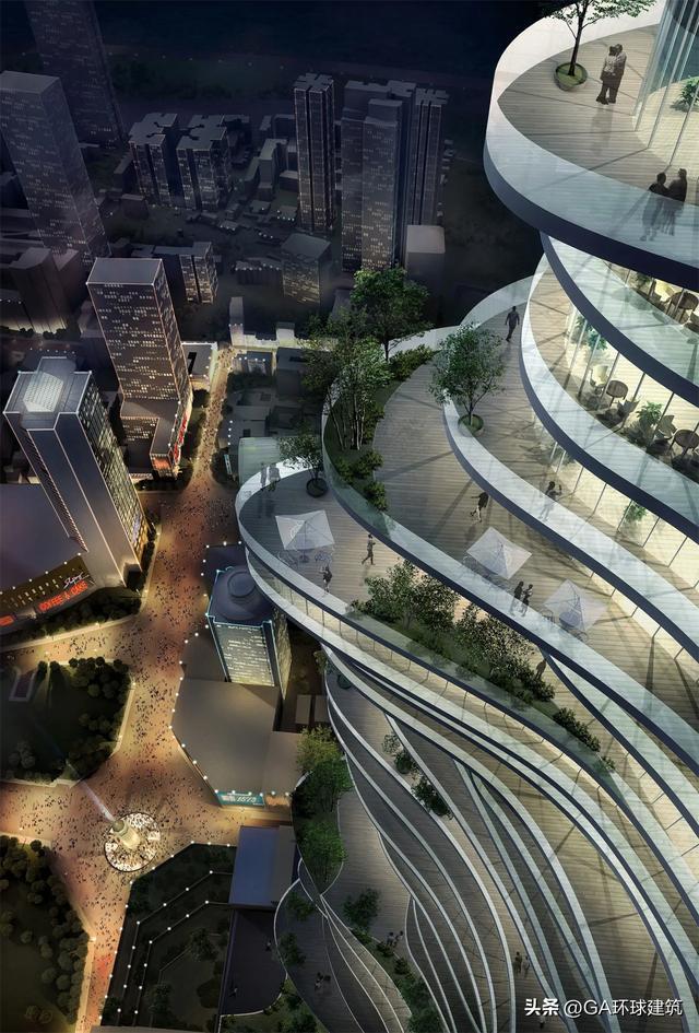 更特别的是,每一层露台都嵌入了立体绿化——植被、庭院、水景与树木层层叠叠,垂直铺开,成了一座真正意义上的“空中森林”。
